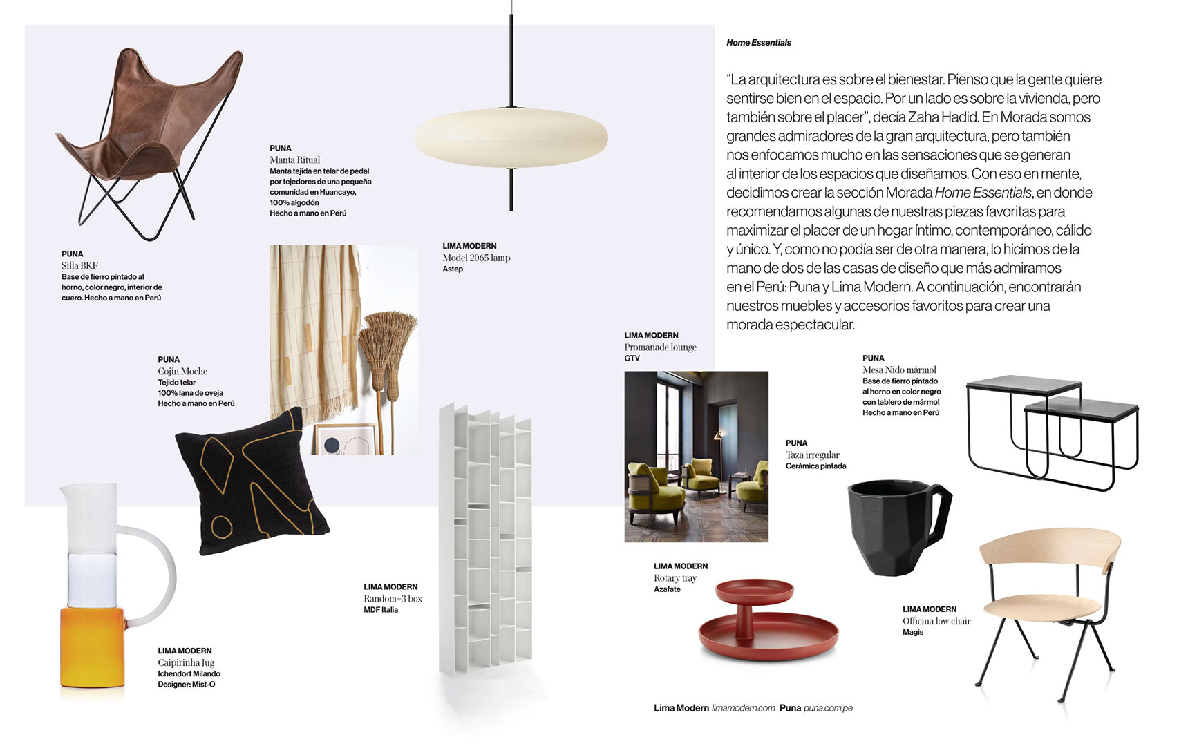 A Lima-based boutique real estate agency founded in 2013, it specializes in creating exceptional architectural spaces. Collaborating with top talent in Peru’s architecture and design sectors, Morada has worked alongside highly skilled architects, urban artists, landscapers, horticulturists, interior designers, and artisans to bring innovative and beautiful projects to life. Morada has been awarded two national architecture prizes and has developed invaluable relationships with its clients.